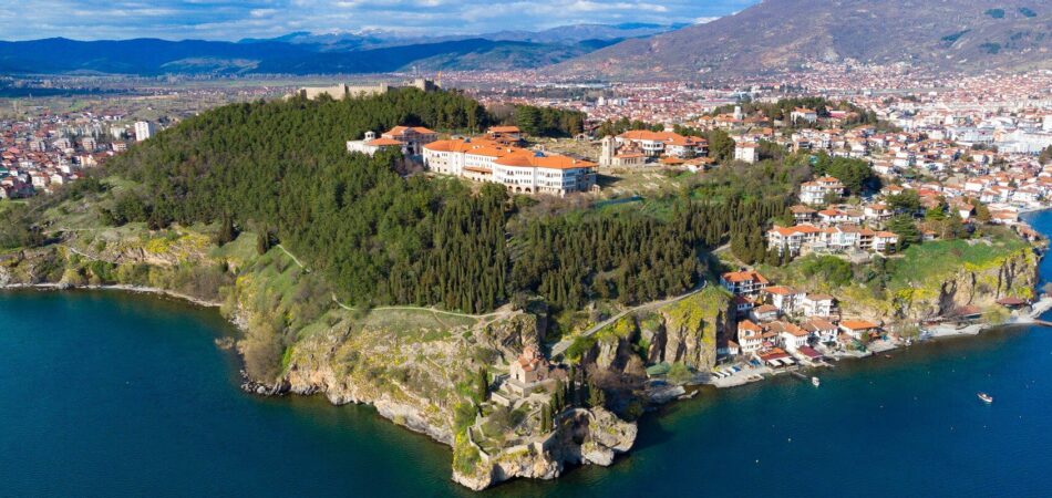 Σε ένα από τα ομορφότερα σημεία των Βαλκανίων, εκεί που η Μεγάλη Πρέσπα χωρίζεται με τα νερά της λίμνης Οχρίδας από το όρος Ξεροβούνι (Σούβα Γκόρα). Πολιτιστικά & ιστορικά, μεταφερόμαστε νοερά στα χρόνια του Βυζαντίου και σε μια σημαντική εστία για τη διάδοση της χριστιανικής πίστης και ελληνικής παιδείας. Η Βυζαντινή Οχρίδα, που αποκαλύπτει ένα μεγαλείο πολιτισμού και ιστορίας μέσα από αξιοθαύμαστα μνημεία και βυζαντινές εκκλησιές.